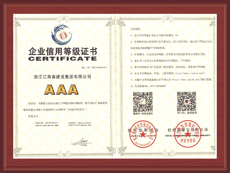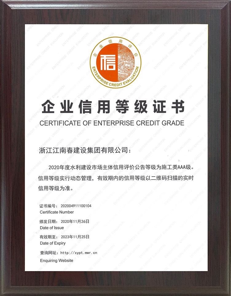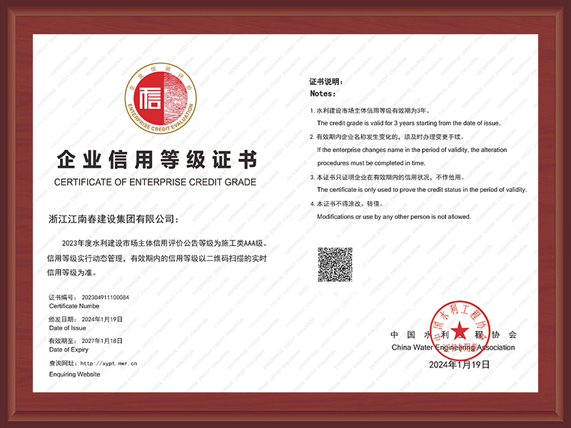 中國(guó)水利工程協(xié)會(huì)AAA證書
