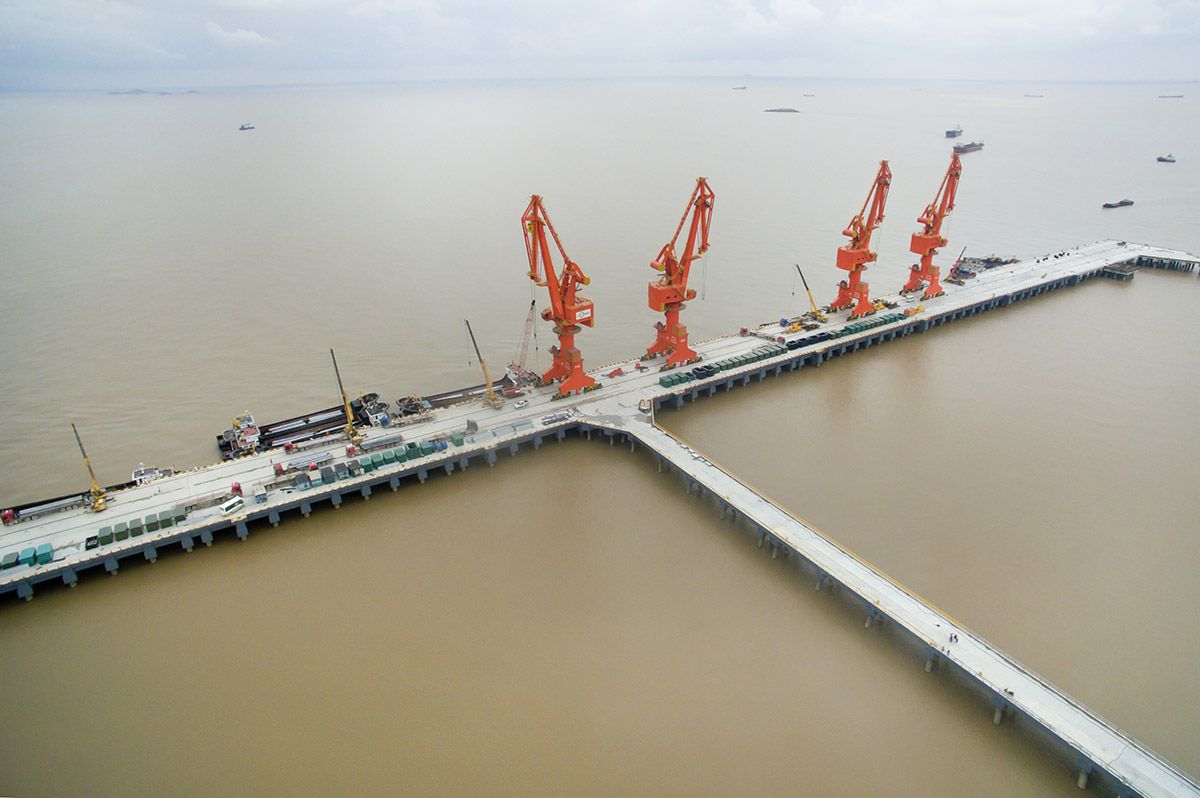 大小魚山多用途碼頭一期工程--水工主體工程:5萬噸級多用途碼頭、2座引橋的上部結(jié)構(gòu)及附屬設(shè)備安裝碼頭,碼頭平臺長度為600m,寬32m,共9個分段,上部結(jié)構(gòu)采用現(xiàn)澆樁帽、預(yù)制橫梁、預(yù)制軌道梁、預(yù)制縱梁及疊合式面板,通過現(xiàn)澆面層連成整體;2#3#引橋238m,寬9m,上部結(jié)構(gòu)采用高樁梁板結(jié)構(gòu)。