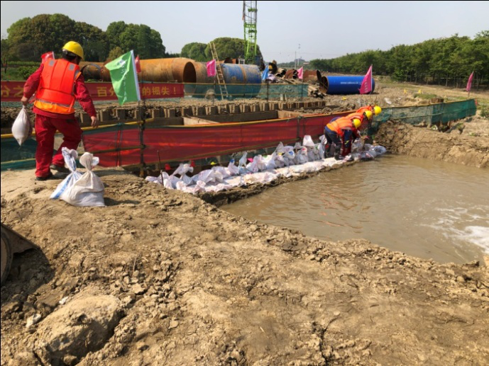為切實(shí)做好工程安全度汛工作,積極應(yīng)對(duì)臺(tái)風(fēng)、暴雨等突發(fā)事件,確保工程防汛防臺(tái)工作規(guī)范、科學(xué)、高效、有序進(jìn)行,結(jié)合公司和業(yè)主對(duì)防汛部署要求與工程實(shí)際情況,在2020年4月13日上午,嘉興市域外配水工工程(杭州方向)管道二標(biāo)開展了防洪度汛應(yīng)急演練,并請(qǐng)業(yè)主及監(jiān)理單位進(jìn)行了現(xiàn)場(chǎng)指導(dǎo)。
